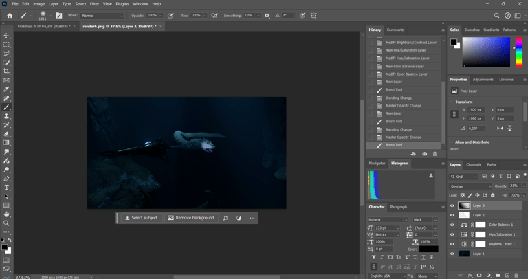 Used for image editing, visual retouching, and color/light adjustments. I apply it for composition, mockups, and enhancing renders with refined post-production details.