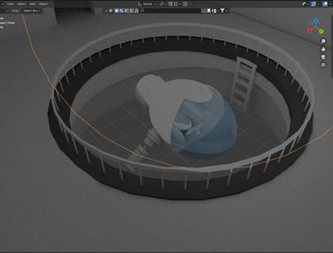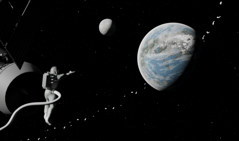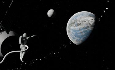 This piece focuses on the scale of space and the fragile presence of a single astronaut. I kept the astronaut and spacecraft simple in form so the main focus would stay on the planet below. Built in Blender with Photoshop textures, it’s more about atmosphere and mood than hyper-detailed modeling.